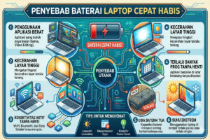 Kenapa Baterai Laptop Cepat Habis Padahal Baru Dipakai Ini Penyebab Utama dan Cara Mengatasinya April 15, 2026 by Rhina Puspita