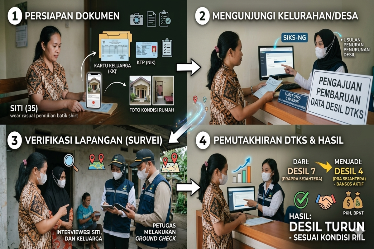 Menurunkan desil bukan berarti memanipulasi data. Proses ini dilakukan dengan memperbarui data sesuai kondisi nyata keluarga. Jika memang kondisi ekonomi menurun, maka desil bisa disesuaikan. Berikut langkah-langkah yang bisa kamu lakukan: