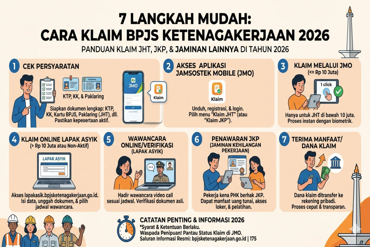 Cara klaim BPJS Ketenagakerjaan 2026 kini semakin mudah dengan adanya layanan digital yang memungkinkan peserta mengajukan permohonan secara online. Dengan memahami jenis program, menyiapkan dokumen lengkap, serta mengikuti prosedur resmi, proses pencairan dana dapat berjalan lebih cepat dan aman.