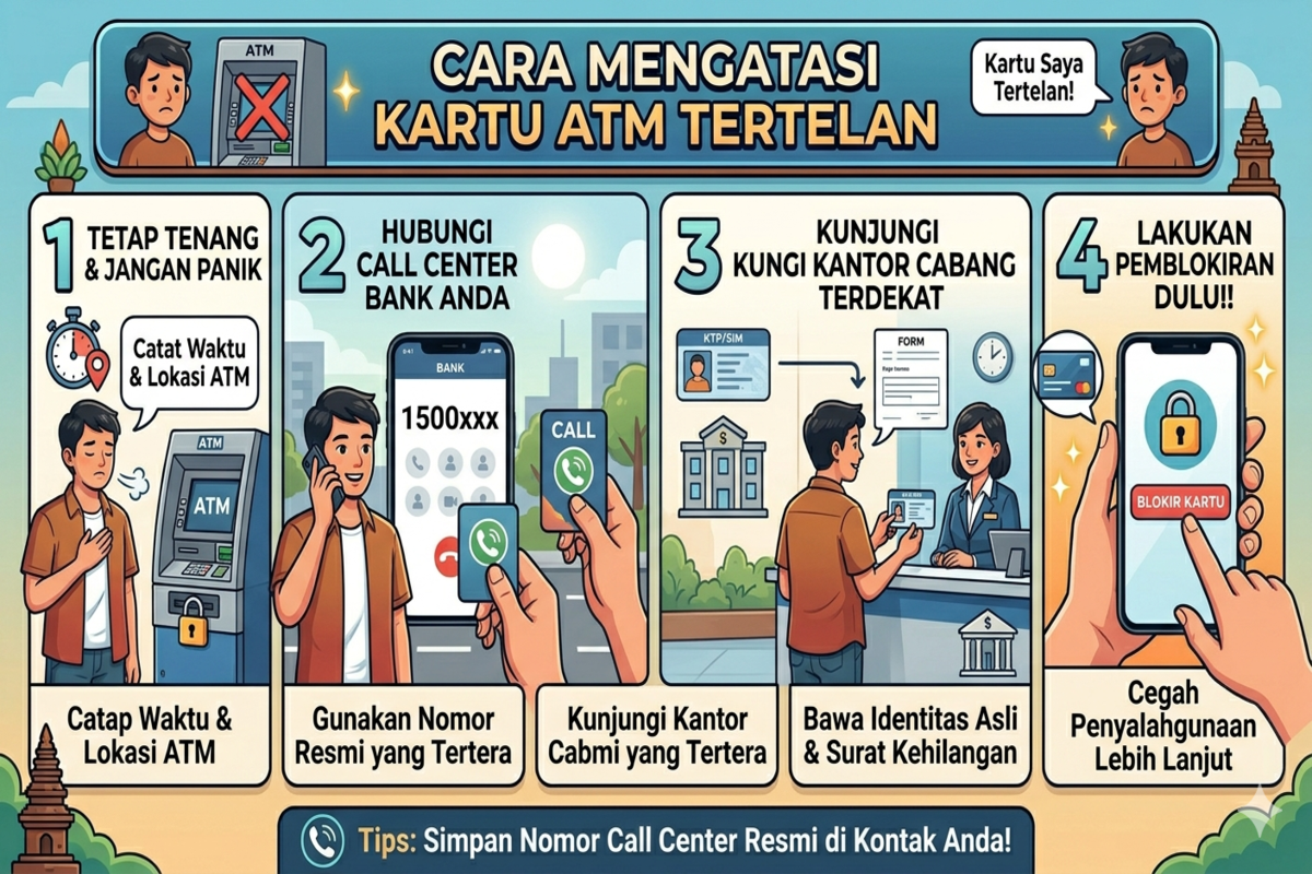 Mengalami kartu ATM tertelan memang bisa membuat panik, tetapi situasi ini sebenarnya dapat ditangani dengan langkah yang tepat. Kunci utama adalah tetap tenang, segera mencatat lokasi mesin, memeriksa transaksi, dan menghubungi pihak bank untuk memblokir kartu.