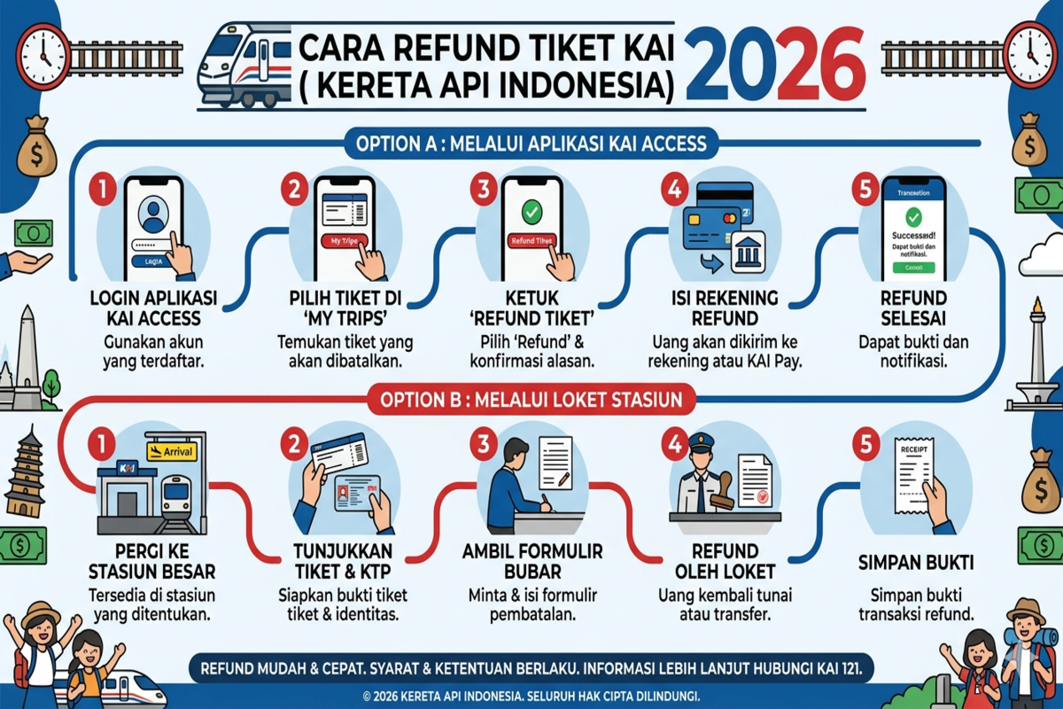 Artikel ini akan menjelaskan secara lengkap tentang cara refund tiket kereta terbaru tahun 2026, termasuk syarat, potongan biaya, waktu pencairan dana, hingga penyebab refund gagal. Informasi ini penting agar kamu tidak panik saat harus membatalkan perjalanan secara mendadak.
