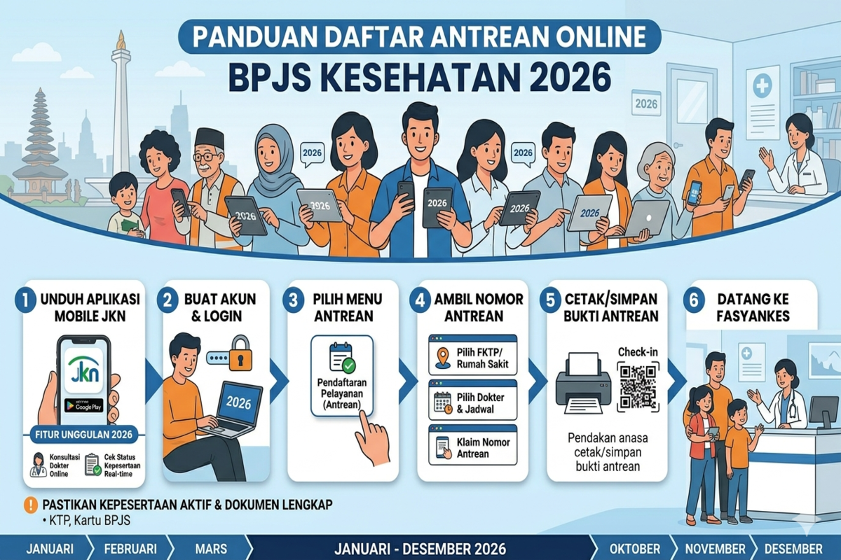 Cara daftar antrean online BPJS Kesehatan terbaru 2026 menjadi solusi praktis bagi masyarakat yang ingin mendapatkan layanan kesehatan dengan lebih cepat dan nyaman. Melalui aplikasi Mobile JKN maupun website resmi, proses pendaftaran kini bisa dilakukan dari rumah tanpa harus menunggu lama di fasilitas kesehatan.